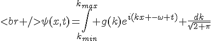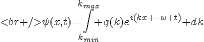 Bon ça c'est dans le cas discret, mais si on fait une somme continue sur un intervalle de k on définit le paquet d'onde par: