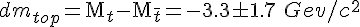 La collaboration CDF vient de déposer un article sur arxiv sur les résultats de mesure de la masse des quarks top et antitop, et ils trouvent une différence de 3.3±1.7 GeV/c2 alors que d'après le modèle standard, leur masse devrait être égale (!). Bon, ils sont à 2, alors qu'on considère que le résultat est confirmé à 3