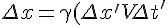avecla vitesse relatives entre les deux referentiels et de même direction que l'axe des