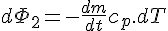 m.cp.dT/dt=h.s.dT/dx cependant je n'arrive pas à faire l'application numérique. Que mettre en "m" qui est en kg? De même pour dT/dt sachant que l'inconnue ici est le Tf à x=1.5...De plus dans ma relation, je ne tiens pas compte de la conductivité thermique de la conduite alors qu'elle joue forcément un rôle la dessus...