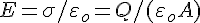 On trouve: E=Q/(A*epsilon) epsilon étant la permittivité électrique du vide.