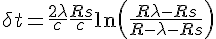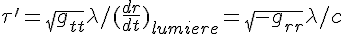 Par contre je connais la formule donnant l'allongement des durée du fait de l'effet Shapiro appliqué à une trajectoire radiale ( vitesse de lumière coordonnée)
