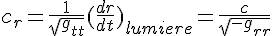et la vitesse coordonnée de la lumière en à la coorodonnée r