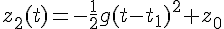 Après avoir fait comme au début (bilan des forces puis seconde loi de newton) mais pour déterminer les constantes d'intégrations je me suis placé à l'instant t1 car sinon c'est faux si on se place à t=0; voila j'ai trouvé x2(t)=x0 puis z2(t)=-gt²/2+gt1t+z0-gt1²/2