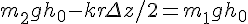 J'ai décidé de réfléchir sur m1 seule. Je considère qu'elle est soumise à trois forces : son poids dirigé vers le bas, et le poids de m2 et la force de rappel du ressort, dirigées vers le haut (elles sont transmises par l'intermédiaire du fil inextensible). Comme ce sont toutes des forces conservatives, j'ai conservation de l'énergie mécanique. Je choisis un repère tel que toutes les énergies soient nulles au départ (le 0 du repère au niveau des masses). En écrivant ça j'arrive à une expression de la hauteur atteinte (valeur absolue) :