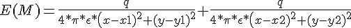 Dans un plan (x,y), on considère deux charges ponctuelles (de même charge q) et dont les coordonnées respectives sont (x1,y1) et (x2,y2).