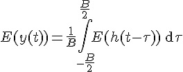 Bonjour à tous je désire savoir est ce que la valeur moyenne du bruit blanc est constante. sachant que h(t) est un (1/B)rect(t/B) et H(f)=sinc(f./B) voilà ce que j'avais fait: or est ce juste? merci d'avance