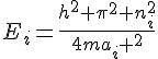 En résolvant l'équation de Schrödinger suivante (i désigne 1, 2 ou 3, xi la coordonnée x, y ou z et ai la longueur a, b ou c) :, on trouve des fonctions d'onde et des énergies de la forme :
