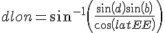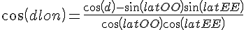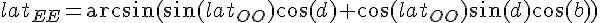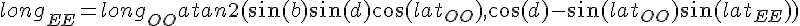 La première formule est immédiate en utilisant la formule fondamentale de la trigo sphérique (cf http://fr.wikipedia.org/wiki/Trigono...sph%C3%A9rique) appliquée au triangle sphérique qui va bien (N, OO, EE sur le schéma). En revanche, je ne comprend pas du tout comment obtenir la deuxième, pourtant on voit bien sur la figure la quantité à rajouter àmais je n'arrive pas à déterminer ne serait-ce qu'un seul argument de la fonction atan2...