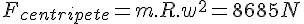 Calculer la force centripète à laquelle est soumise une pale de cette turbine. La pale a une masse M de 220g et est située à une distance moyenne de 1.6m de l'axe de rotation.
