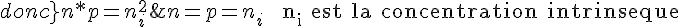 On dit qu'à l'équilibre thermodynamique, n*p=ni2, et ... je ne comprends pas. Que cela signifie-t-il? Je n'arrive à faire aucun lien entre matériau intrinsèque et ses porteurs...?