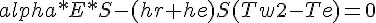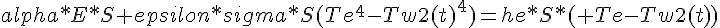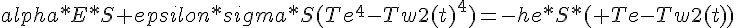 epsilon*sigma*S*(Te^4 - Tw2(t)^4) = he*S*(Te-Tw(t))