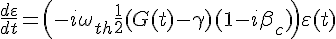 où le beta est le linewidth enhancement factor, le 'G - gamma' le gain moins les pertes et le omega la pulsation du laser
