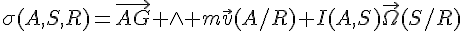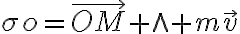 c'est le moment cinétique calculé par rapport à un point O, d'un point matériel M de masse et de vitesse \vec{v} par rapport à un référentiel R.