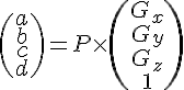fonction des proportions de couleurs A, B, C, D visibles sur cette surface.