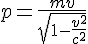 Sachant que la quantité de mouvement s'écrit en relativité restreinte:Envoyé par the_oliver_2000