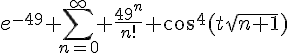 f(t):=exp(-49)*(sum(49^n*cos(t*sqrt(n+1)) ^4/factorial(n), n = 0 .. infinity));