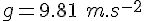 , avec g l'accélération de la pesanteur au sol