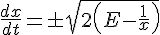 2)J'ai utilisé E=T+V, trouvé E=0 grâce aux conditions mais je me retrouve avec 0,5(x'^2)-(1/x)=0.