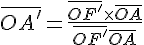 donc (je ne comprends pas comment on passe à cette étape,j'ai une application dans mon livre et je m'en suis aidée pour résoudre l'exercice) OA'=OA*OF'/OA+OF