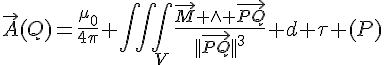 Et là je sèche. J'ai tenté de considérer chaque volume élémentaire comme un dipôle magnétique enfin de calculer un champ élémentaire dB (en galérant sur les changements de bases) puis intégrer sur le volume, mais le résultat n'est pas particulièrement concluant lorsque je compare le tracé du champ magnétique à celui produit par d'autres programmes expressément conçus pour l'étude de ces phénomènes...
