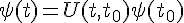 l'évolution de la fonction d'onde dans le temps s'écrit en fonction de l'opérateur d'évolution :