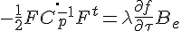 Je suis intéressé par la loi d'écoulement plastique en grandes déformations basée sur la décomposition multiplicative du gradient de la déformation, communément noté F, en une partie élastique et plastique :. Je rencontre la loi constitutive suivante :