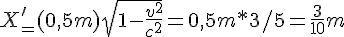 à t= 0 x=0 l'observateur O' s'éloigne de O vers le mur à une vitesse constante v = 0,8c, il traine derrière lui un ruban dont la longueur est à déterminer.