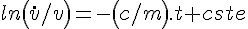 soit au final la solution générale (v est la vitesse, dérivée de la position x) :