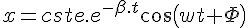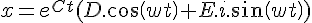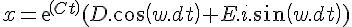 - la 2eme chose que ceci m'inspire (et qui est lié à mes souvenirs de méca) est que i est une constante donc E.i est une constante également. Donc la solution est une somme d'un "cos" et d'un "sin" adoucit par une exponentielle décroissante "exp(Ct)" et là je peux tracer ma solution complètement dans le domaine réel car j'ai identifié le "E.i" comme une constante (réelle!).