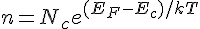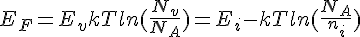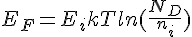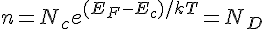 s'il vous plait, comment je peut déterminer la position de l’énergie de Fermi dans un semi conducteur GaAs d'une énergie de gap = 1.43 ev dopé par 2 *10^21 donneurs/m^3 a 300 k a savoir, que j'ai déjà calculer l’énergie de Fermi pour le GaAs intrinsèque j'ai trouvé ni= 1.82*10^12/m^3. merci d'avance