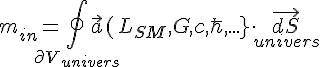 Voyant que G [ m³/s²kg], et considérant, conformément au principe de Mach, que l'inertie (la masse) est déterminée par l'accélération relative au reste de l'Univers, il est suggéré que [kg]=[m³/s²]=[(m/s²).m²] pour que G soit adimensionnel.
