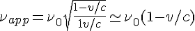 Par effet doppler, une particule qui s'éloigne ou se rapproche de la source semble émettre à une fréquence différente de sa fréquence d'émission. La fréquence apparente est donnée par la relation :