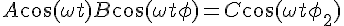 Les amplitudes sont identiques pour simplifier le calcul. En développant avec les formules bien connues de trigo on trouve un produit de termes en cos (w1-w2) et cos (w1+w2)