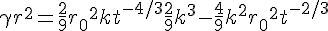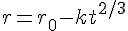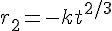 Universus a précisé qu'il s'agissait d'UNE solution analytique de l'équation proposée. Elle ne vérifie pas tes conditions initiales, puisque tu veux que r2(0) = r2(initial), alors que ta relation r2(t) = kt^2/3 donne r2(0) =0.Cette équation du mouvement a été donnée sur le forum de math de futura-science