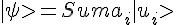 "Donnez la représentation du ket psi dans la base orthonormée {|ui>} i appartenant aux entiers naturels.