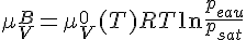 Le potentiel chimique de l'eau en un point A situé juste en-dessous du ménisque mais assez loin pour que les gradients de pression n'y soient pas trop forts est :