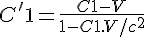 -> TEX] C1 = \frac{C'1 + V}{1 + C'1.V/c^2} [/TEX]