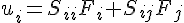 en RDM on utilise le principe de superposition car tout est linéaire. Si on a deux forces "Fi" et "Fj" on peut calculer les déplacements aux points "i" et "j" par sommation des deux cas simplifiés où il n'y a qu'une force (respectivement Fi et Fj).