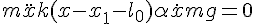 On repère les positions M etS par leurs abscisses x etsur un axe Ox tel que x1=0 lorsque la route est horizontale. Par ailleurs, le point M est soumis à l'action d'un amortissement fluide de coefficient