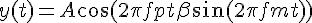 j'ai une question sur l'expression d'un signal modulé. Pour moi une modulation en fréquence d'un signal d'amplitude A, de fréquence f, de phase phi(t) modulé par un signal d'amplitude B, de fréquence fm s'écrit comme ceci :