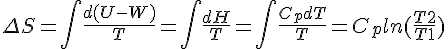 avec delta U (=Q+w): (deltaS) = (/) (U-w)/T