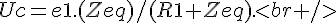 La résistance R(la seconde) est donc mise en parallèle avec C puis on applique le diviseur de tension de façon à avoird'ou Zeq=...