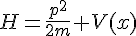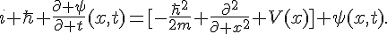 2) l'équation, cas particulier de 1) pour lequel le système quantique est une particule quantique non-relativiste dans un potentiel. Dans ce cas, est l'espace des fonctions de carré intégrable sur (disons qu'il n'y a qu'une variable de position pour simplifier) et l'état est décrit par une fonction . L'hamiltonien du système classique associé est où est la masse de la particule, est l'impulsion et est le potentiel. Au niveau quantique, la variable devient l'opérateur de multiplication par et la variable devient l'opérateur de dérivation . L'équation de Scrödinger dans ce cas s'écrit donc:
