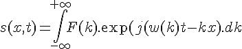 (j'ai enlevé la phase θ(k) en remplacant le cos par un exponentiel complexe, ce qui me semble ne pas changer le pb). Je me demande donc comment on pourrait trouver la fonction F dans le cas où w(k) n'est pas linéaire, donc en milieu dispersif (au cas contraire on se ramène à une TF classique).