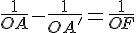 calculer avec les relations de grandissement et de conjugaisons les positions de l'écran et de la lentille