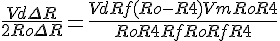 Par la suite , on me demande d'exprimer Vm en fonction de Rf,Ro,R6,R5,V et deltaR = R-Ro sachant que le pont est à l'équilibre et que R1=R3=R0, R(t)= Ro+deltaR et deltaR n'est pas négligable devant R.