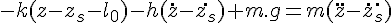 représente la vitesse relative des deux extrémités de l'amortisseur et h le coefficient de frottement fluide.
