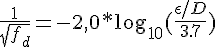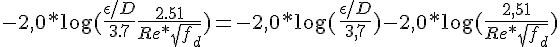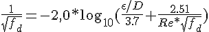 Je pense qu'on peut toujours utiliser Coolebrook et dire que si Re est grand , alors le second terme du logarithme tend vers 0 et il ne reste plus que la rugosité relative qui est constante pour pour tuyaux donné et donc que le coeff de perte de charge se réduit à :