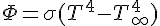 pour établir le le bilan radiatif d'une surface à la température T entouré d'un milieu à la température T∞ , on utilise la formule suivante :